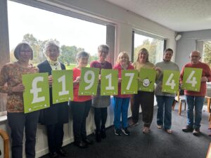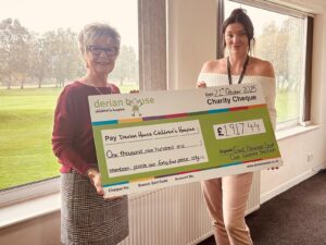 The Ladies Captain presents the Cheque for £1917-44 to Derian House